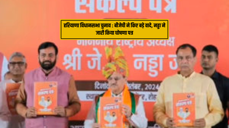 हरियाणा विधानसभा चुनाव : बीजेपी ने किए बड़े वादे, नड्डा ने जारी किया घोषणा पत्र